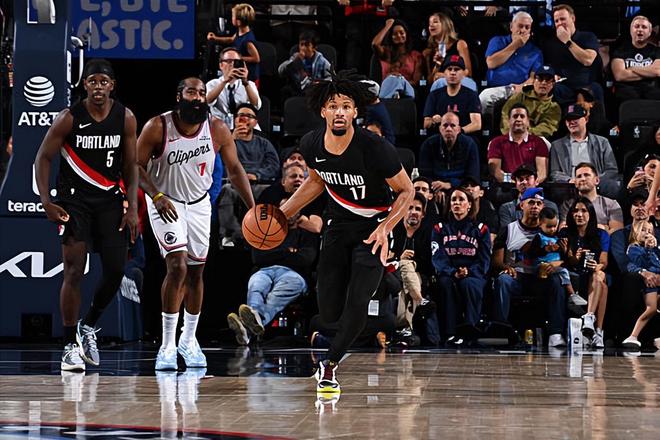 本场比赛中,开拓者的先发后场新星谢顿-夏普(Shaedon Sharpe)的表现实在是惨不忍睹。夏普全场出场32分18秒,投篮24中7,三分线外9中1,罚球4中4,得到了19分5篮板1助攻2抢断的数据,还有6次失误和1次犯规,正负值为-5。夏普在进攻端毫无手感,他得到了大量的出场时间和出手机会,但是他的进攻效率简直是惨不忍睹,他在三分线外的表现更是相当离谱。不仅浪费了大量的投篮机会,夏普在场上还出现了无数次失误,浪费了大量的球权。夏普在防守端的表现也是非常糟糕的,他完全没有在防守端起到很好的效果,而且他的防守积极性也是相对有限的。不夸张地说,夏普算得上是快船本场比赛取得胜利的功臣之一。但凡夏普的出场时间少一些或者他能够减少自己的出手机会,快船想要取得胜利可能都不是那么容易的事情。